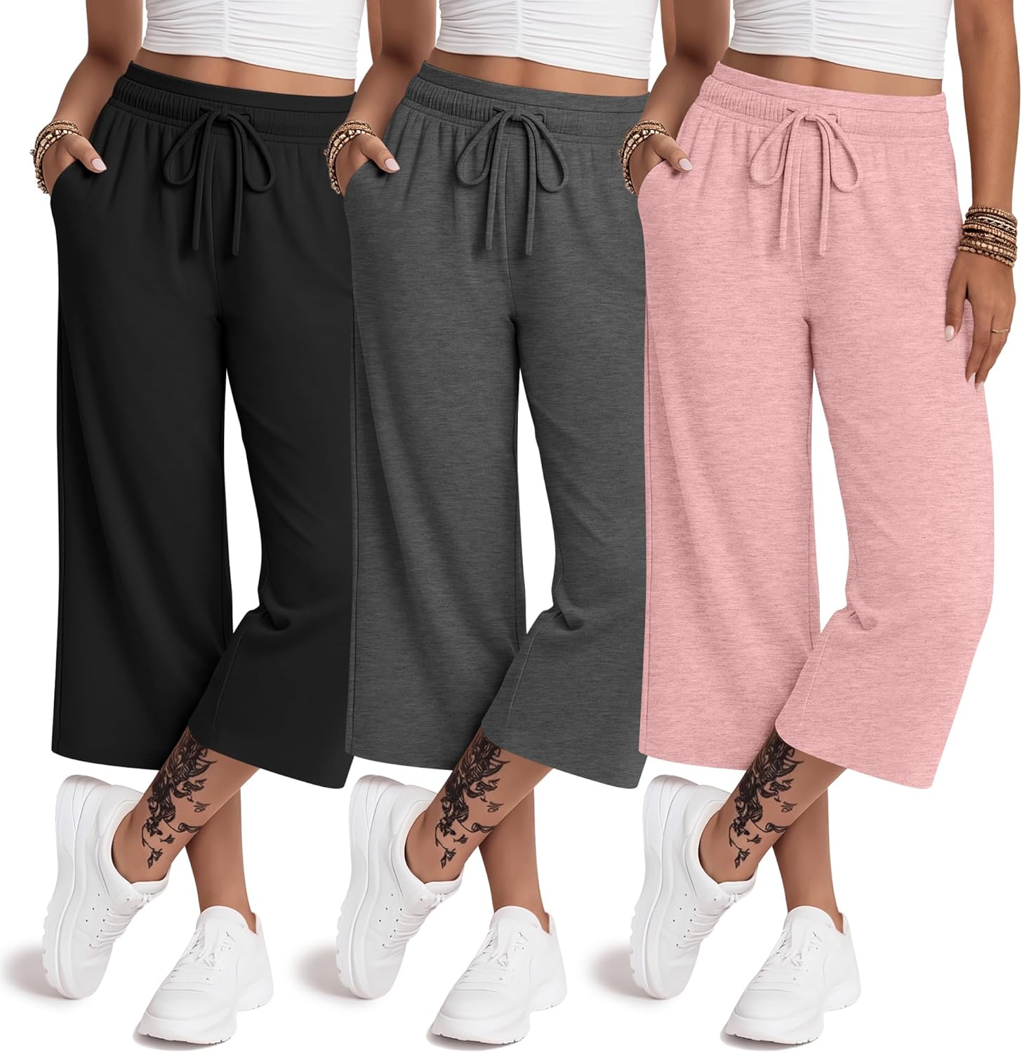 Features: These capri workout pants for women pair easily with sneakers and a fitted tank for workouts, or an oversized shirt for weekends. Their straight cut flatters crop tops and tucked tees, with the adjustable waist ensuring comfort. Our capris for women with pockets are available from S to XXL. Please refer to the size chart before purchasing and choose the size that suits you. Material: 60% Polyester, 35% Cotton, 5% Spandex Package includes: 3 X Womens Capri Pants Notes: Manual measurement, please allow slight errors on size. The color may exist a slight difference due to different screen displays